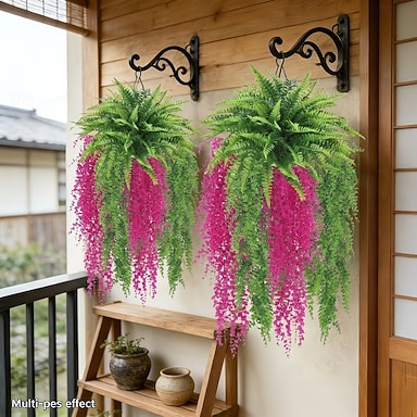 2/4 piezas de flores artificiales colgantes para exteriores, decoración de primavera y verano, de seda sintética, resistentes a los rayos UV, realistas, para el porche, el patio y el balcón del hogar.