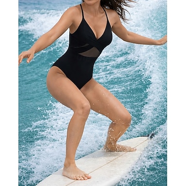 Mujer Traje de baño Trajes de baño Una pieza Color sólido Malla Protección UV Elástico Sin Mangas Bañadores Traje de baño Surf Buceo Natación Verano