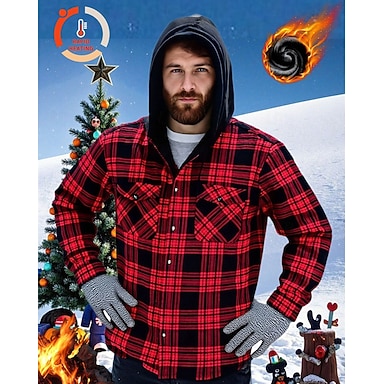 Hombre Shacket Chaqueta tipo camisa Chaqueta de Invierno Plaid Vacaciones Ropa Cotidiana Negro Blanco Rojo Azul Manga Larga Con Capucha Otoño Invierno Ropa Bolsillo delantero