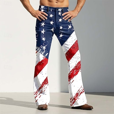 Hombre Estrellas y rayas Bandera de EE. UU. 250 aniversario de los Estados Unidos Pantalones Pantalones de discoteca Pantalones de campana de los años 60 y 70 Media cintura retro de la vendimia