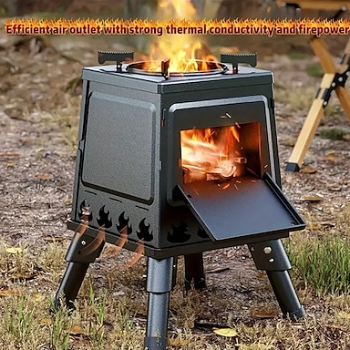 1 pieza de estufa de leña para barbacoa de camping, para exteriores, picnic, barbacoa, viaje, portátil, de hierro fundido, color negro