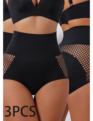 3 piezas de faja moldeadora para mujer, bragas de malla, ropa de dormir, nailon, color liso, sexy, 2 negras + beige, 2 beige + negro, beige, negro, primavera &verano otoño & invierno