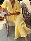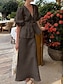 Mujer Vestido maxi Lino de algodón sintético Vestido Kaftan conjunto de falda Moda Casual Diario Exterior Vacaciones Ajuste regular Plano Manga Corta Escote en U Albaricoque Verano Primavera Otoño