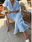 Mujer Moda Casual Midi Alta cintura Faldas Color sólido Correa Casual Diario Fin de semana Azul Piscina Negro Rosa Caqui Verano Algodón y lino