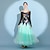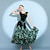 Vestido de baile de salón floral para mujer, de malla verde, con cintura empalmada, manga larga, vestido de vals, falda con inserción de encaje, atuendo de competición estándar moderno.
