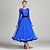 Vestido de baile de salón para mujer, con escote en V y manga larga, con diamantes de imitación, para competición de vals y tango, elegante falda fluida (azul real)