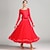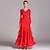 Vestido de baile de salón rojo para mujer, falda de tul con vuelo grande, empalme de malla, manga larga, vestido de vals, traje de competición estándar moderno