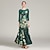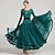 Vestido de baile de salón verde para mujer - Vestido de manga larga tipo A para competiciones, eventos latinos y de baile - Falda fluida