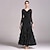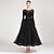 Vestido de baile de salón para mujer, de manga larga, de malla, para vals, tango, competición latina, práctica, dobladillo con volantes, elegante falda fluida, color negro