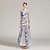 Vestido de baile de salón para mujer, de manga larga, de malla y encaje, para competición de vals, tango, práctica, elegante, con falda fluida, color azul claro.