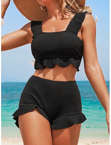 Bañador de bikini de 2 piezas para mujer falda espalda descubierta ideal para vacaciones en la playa color sólido cuello halter sin mangas
