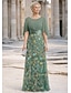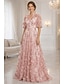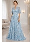 Corte A Vestidos Hasta el Suelo Vestido maxi Vestido Cóctel Vestido de Madrina Manga Corta Camiseta con cuello redondo Elegante Formal Invitado a la boda El derby de Kentucky Encaje con Flores 3D