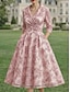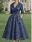 Corte A Vestidos Hasta el Tobillo Vestido Midi Vestido Cóctel Vestido de Madrina Manga 3/4 Escote en Pico Diseño Elegante Lujoso Casual Formal Invitado a la boda Semi-formal Encaje con Flores 3D
