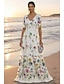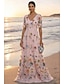 Corte A Vestidos Hasta el Suelo Vestido maxi Vestido de Fiesta Vestido Cóctel Vestido de Madrina Manga Corta Escote en Pico Elegante Vintage Lujoso Formal Invitado a la boda El derby de Kentucky Gasa