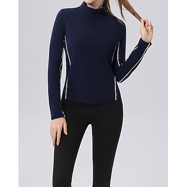 Mujer Color sólido Sudadera tipo polo Falda de tenis Top deportivo Manga Larga Cremallera Transpirable Tenis Golf Corriendo Cuello Alto Chándal Camiseta Azul Oscuro Ropa de tenis