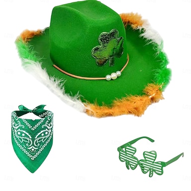 Conjunto de disfraz para el Día de San Patricio para hombre: sombrero de duende verde, pajarita, barba y gafas con forma de trébol. &Collar, perfecto para celebraciones festivas.