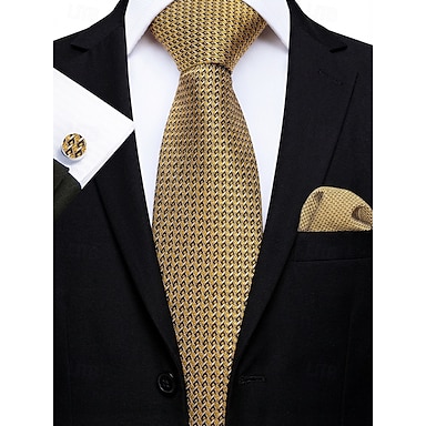 Conjunto de corbata formal para hombre con pañuelo de bolsillo y gemelos - corbata a cuadros de poliéster de lujo para bodas, fiestas de negocios y eventos de gala - elegantes accesorios para trajes de padrinos de boda en varios colores
