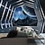 Mural de pared interior de nave espacial en 3D, arte de pared de cabina de nave espacial de ciencia ficción, vista de la Tierra desde el espacio, tapiz futurista de galaxia para decoración de