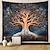 Tapiz estético místico del árbol de la vida, galaxia, estrellas, fase lunar, decoración de pared, póster de tela bohemio para sala de estar, dormitorio