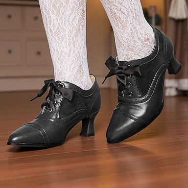 Zapatos de tacón medio con recortes vintage para mujer de los años 30: zapatos retro de piel sintética para baile swing, fiestas de té y moda pin-up.