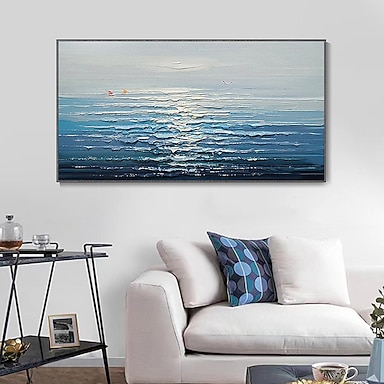 Arte de pared pintado a mano textura gruesa 3d arte de pared de onda de mar pintura moderna con espátula gaviota paisaje marino fiesta de vacaciones océano azul pintura al óleo pintada a mano