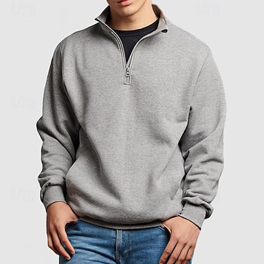 Hombre Pull-over Sudadera con capucha de lana Sudadera con un cuarto de cremallera Sudadera con capucha forrada de polar Negro Blanco Rosa Azul Marino Azul Piscina Cuello Mao Plano Deporte Casual