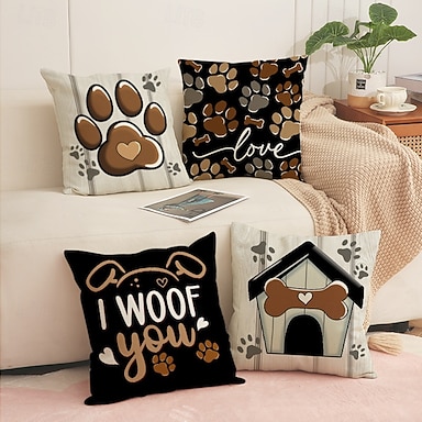 Funda de almohada con estampado de carta de amor para San Valentín, diseño "I Woof You", cojín decorativo acogedor para sofá, dormitorio y sala de estar, regalo perfecto para amantes de los perros y
