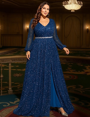 Vestido de invitada de boda de longitud completa línea A vestidos formales vestido de noche madre de la novia elegante vintage de tallas grandes con pliegues lentejuelas y abertura frontal