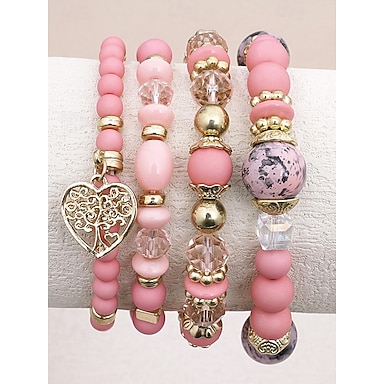 Conjunto de pulseras de acrílico y aleación estilo bohemio para mujer: varios colores, dije de corazón, perfecto para el día de San Valentín y uso diario.
