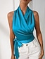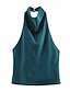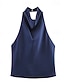 Mujer Top con cuello halter Blusa Camisa sin mangas Espalda al Aire Color sólido Elegante Clásico Moderno Sin Mangas Cuello halter Tops cortos Diario Festivos Noche Azul Piscina Verano Primavera