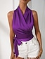Mujer Camisa Elegant Top de satén Camisa de seda Espalda al Aire Plano Elegante Sin Mangas Cuello halter Tops regulares Festivos Noche Negro Blanco Color Camello Morado Marrón Verano Primavera