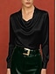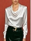 Mujer Camisa Top con cuello halter Blusa Plano Elegante Básico Clásico Manga Larga Cuello halter Tops regulares Diario Festivos Noche Negro Blanco Albaricoque Primavera Otoño