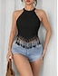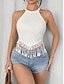 Mujer Camiseta sin mangas Blusa Camiseta sin mangas tipo camisola Camisa sin mangas Franja Plano Bohemia Clásico Casual Sin Mangas Cuello halter Tops cortos Diario Festivos Noche Negro Blanco Verano