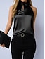 Mujer Camisa Elegant Top de satén Blusa Frunce Plano Elegante Sin Mangas Cuello halter Tops regulares Diario Trabajo Festivos Negro Verano Primavera Otoño