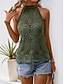 Mujer Blusa con textura Parte superior con ojales Camiseta de punto Top con cuello halter Ojal Color sólido Graphic Plano Moda Clásico Casual Sin Mangas Escote en Pico Tops regulares Casual Diario