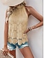 Mujer Blusa Tops de encaje Camisa sin mangas Encaje Plano Elegante Básico Clásico Sin Mangas Cuello halter Tops regulares Diario Festivos Noche Blanco Amarillo Verde Ejército Azul Marino Albaricoque