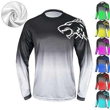 Hombre Jersey de descenso Manga Larga MTB Bicicleta Montaña Ciclismo Carretera Rojo tinto Amarillo Rojo Degradado Lobo Bicicleta Deportes Degradado Lobo Ropa