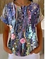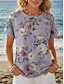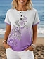 Mujer Camiseta Estampado Botones del pecho Floral Graphic Elegante Moderno Casual Manga Corta Henley Tops regulares Diario Morado Verano Primavera