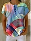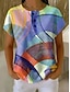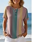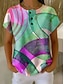 Mujer Camiseta Estampado Botones del pecho Graphic Geométrico A Rayas Elegante Clásico Moderno Manga Corta Henley Tops regulares Diario Arco Iris Verano Primavera