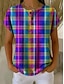 Mujer Camiseta Estampado Botones del pecho Plaid Elegante Moderno Casual Manga Corta Henley Tops regulares Diario Morado Verano Primavera
