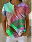 Mujer Camiseta Estampado Botones del pecho Graphic Geométrico Plaid Elegante Clásico Moderno Manga Corta Henley Tops largos Diario Azul Piscina Amarillo Rosa Rojo Púrpula Claro Verano Primavera