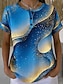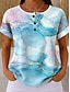 Mujer Camiseta Estampado Botones del pecho Impresión de mármol Elegante Moderno Casual Manga Corta Henley Tops regulares Diario Azul Piscina Verano Primavera