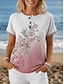 Mujer Camiseta Estampado Botones del pecho Floral Graphic Elegante Moderno Casual Manga Corta Henley Tops regulares Diario Azul Piscina Amarillo Rosa Morado Verde Trébol Verano Primavera