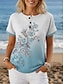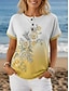 Mujer Camiseta Henley Shirt Botones Estampado Floral Túnicas Básico Manga Corta Escote Redondo Tops regulares Festivos Fin de semana Azul Piscina Blanco Amarillo Verde Claro Verde Trébol