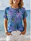 Mujer Camiseta Henley Shirt Botones Estampado Floral Túnicas Básico Manga Corta Escote Redondo Tops regulares Festivos Fin de semana Azul Piscina Morado Verde Trébol