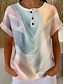 Mujer Camiseta Henley Shirt Botones Estampado Ombre Floral Cosecha Vintage Elegante Básico Manga 3/4 Escote en Pico Tops regulares Fin de semana Azul Piscina Azul cielo Rosa Brillante Verano