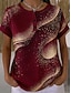 Mujer Tops tejidos con textura Camiseta Bloque de Color Graphic Tribal Elegante Clásico Manga Corta Cuello Barco Escote Redondo Henley Tops regulares Diario Deportes Azul Piscina Rojo Morado Verde