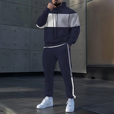 Hombre Bloque de color 2 piezas Conjuntos de sudaderas 3D Chándal Sudadera con capucha Manga Larga Pantalones largos Con Capucha Deportivo Casual / Diario Ropa Deportiva Impresión 3D Bloque de Color