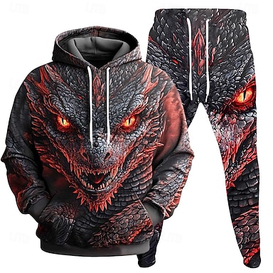 Hombre Animal Dragón 2 piezas Conjuntos de sudaderas 3D Chándal Sudadera con capucha Manga Larga Pantalones largos Con Capucha Casual / Diario Ropa Deportiva Atuendo para festival Impresión 3D