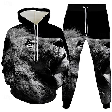 Hombre León 2 piezas Conjuntos de sudaderas 3D Chándal Sudadera con capucha Manga Larga Pantalones largos Con Capucha Casual / Diario Moderno Ropa Deportiva Ropa de calle Impresión 3D Primavera Otoño